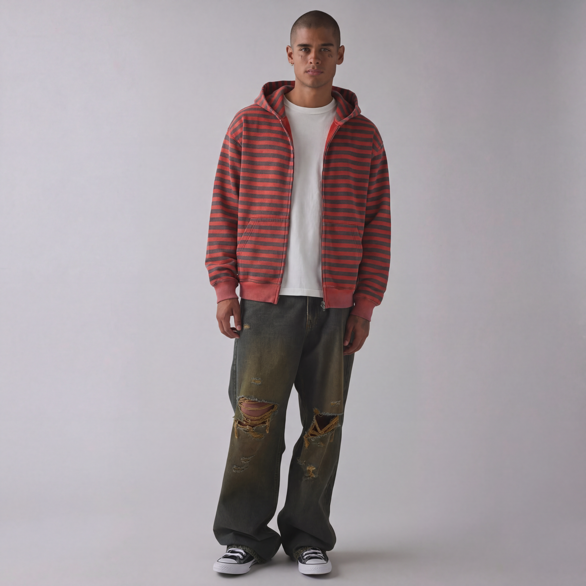 Vintage Red and Black Stripe Zip-Up Hoodie